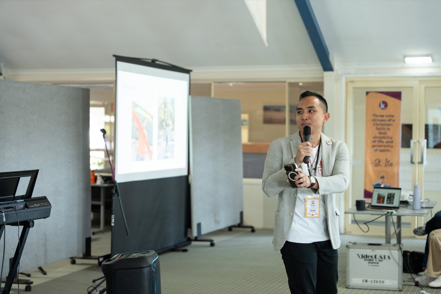 Dalam sesi pertama bertajuk “Far From Home”, Ricky Naliman, salah satu pendiri KOMKIA, membagikan perjalanan hidupnya dalam menggereja dan berkomunitas. Ia menekankan bahwa meski jalan hidup tidak selalu mudah, dan Tuhan tidak akan pernah meninggalkan kita. Ricky berpesan agar para peserta tidak pernah menyerah dari Tuhan, karena kemanapun kita pergi, Tuhan akan selalu beserta kita, menguatkan kita dalam iman, harapan, dan kasih.